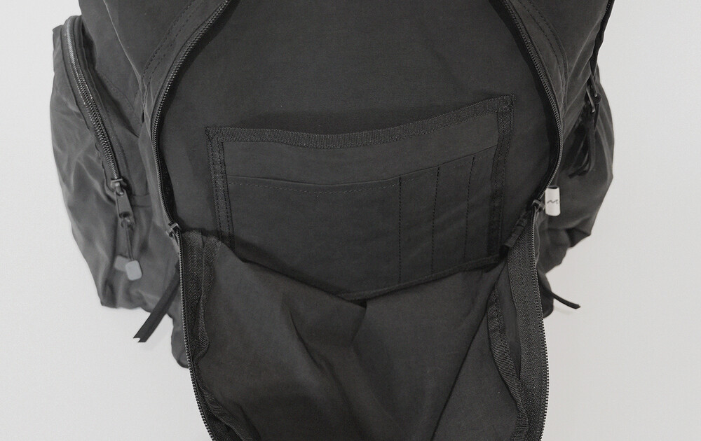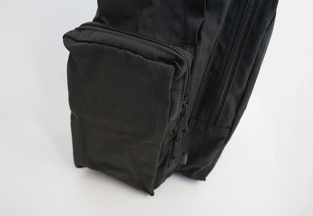 앞 포켓에는 작은 소품들을 수납할 수 있도록 내부 포켓을 추가로 넣었습니다. 앞 포켓 내부의 펜 포켓 3번째가 의도보다 좁게 나와 1차 생산분은 10% 할인하여 진행합니다.
