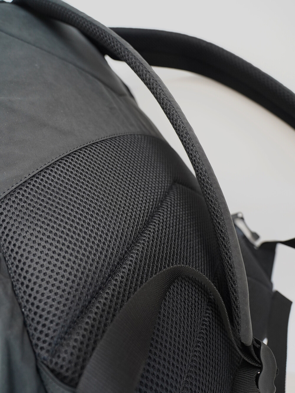 포켓 어깨 끈, 등에 맞닿는 부분, 바닥, 사이드 포켓면, 노트북을 넣는 포켓에는 충전재를 넣어 물건을 보호하고, 편안한 착용감을 갖도록 했습니다.