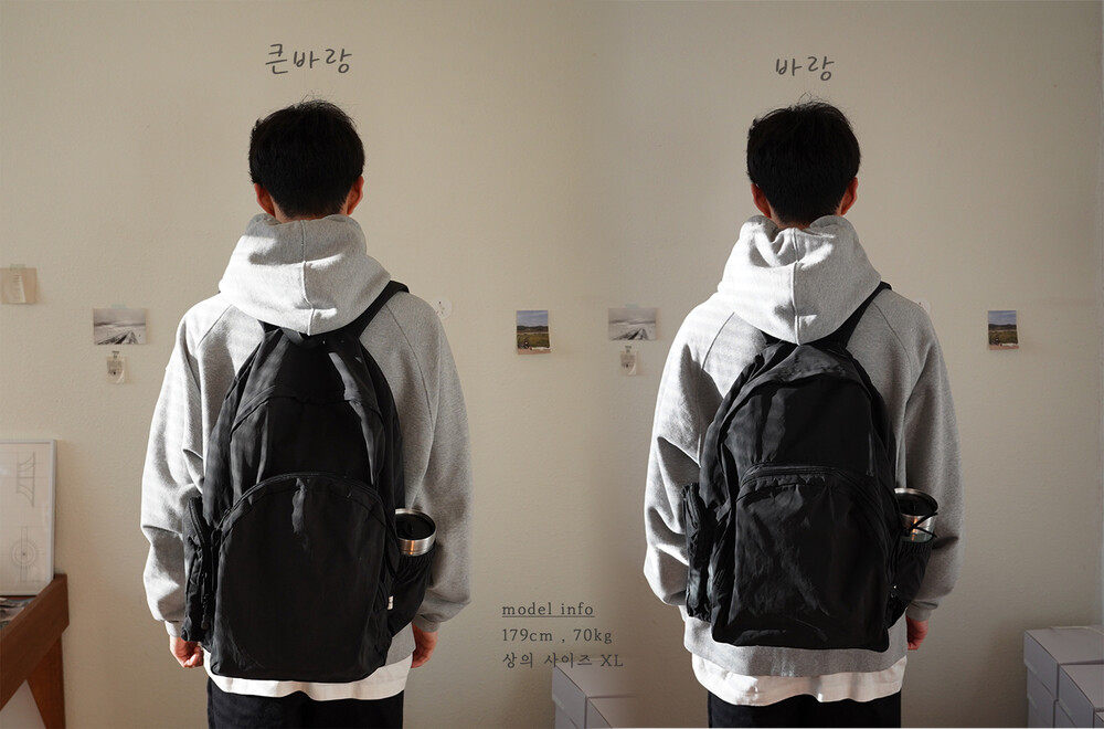 수년간 사랑받아 온 바랑의 탁월한 수납력과 자연스러운 소재, 형태를 유지하면서 내구성을 보완하고, 더 넉넉한 크기로 완성된 큰 사이즈 버전입니다.