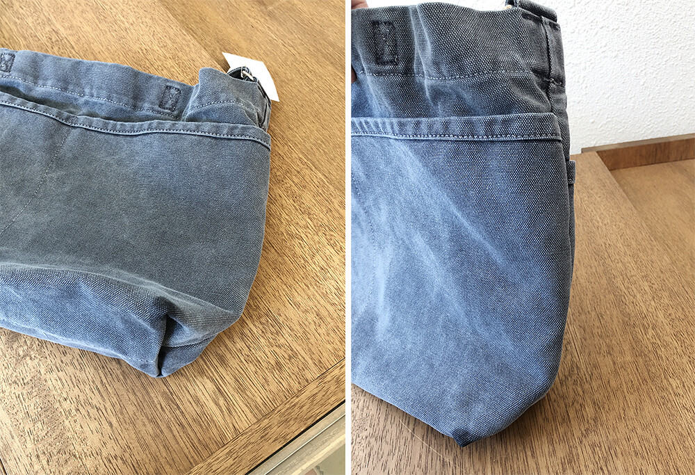 3. 봉제 후 염색을 하는 빈티지 후염의 특징으로 모든 부분의 염색이 일정하지 않습니다.