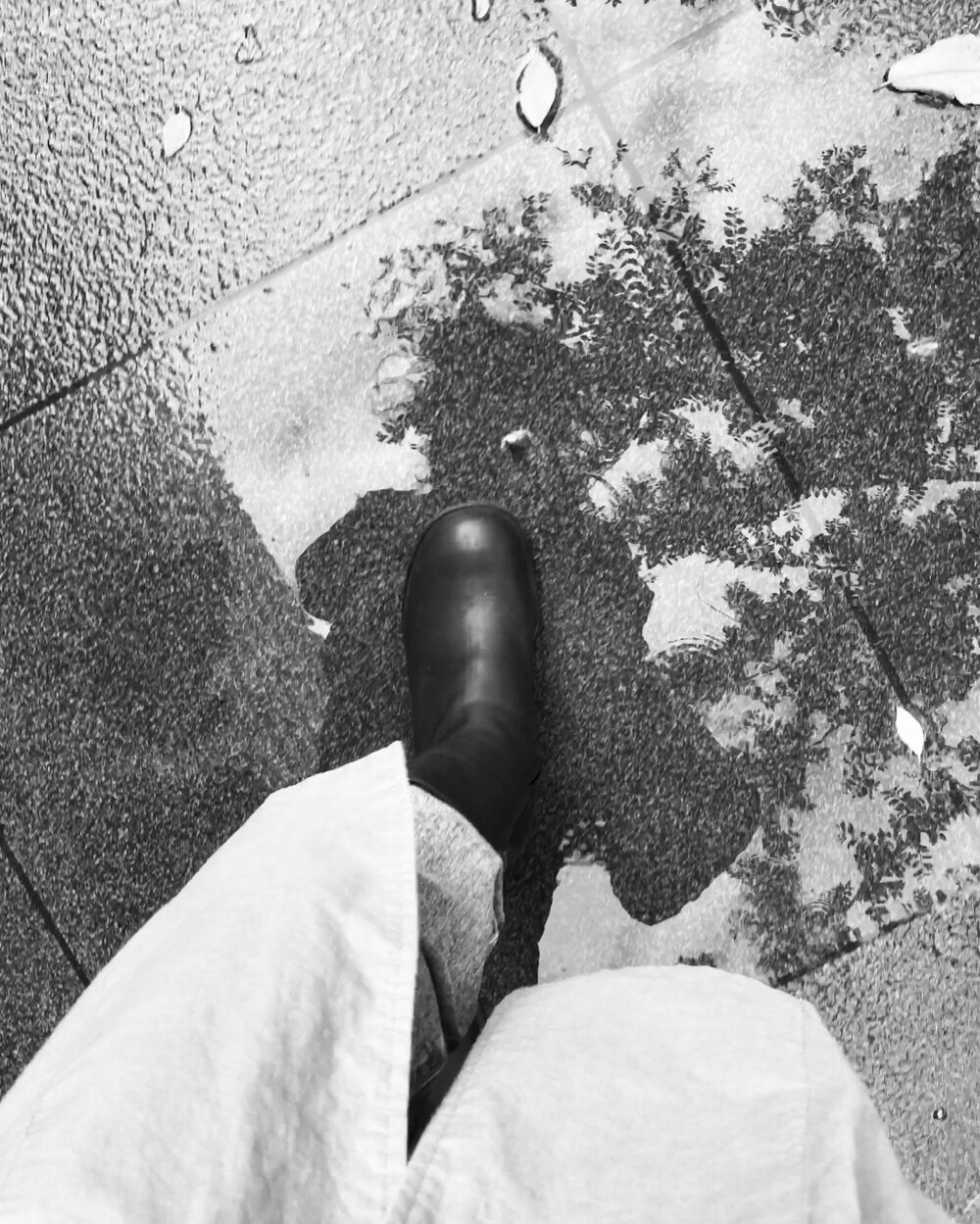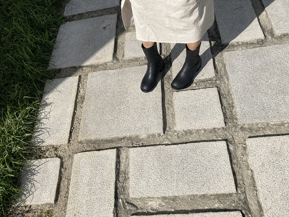 일주일 째 부츠를 신으면 무대 위에 선 것처럼 몸이 곧추 세워지는 느낌이에요. 뭔가 주인공 되는 느낌이랄까요. 걸음도 평소보다 성큼성큼 커져요. 롤링 되는 부분에 주름이 잡히기 시작했고, 가죽의 단단한 느낌은 부쩍 익숙해졌어요. (테스트 목적이라 자주 신고, 많이 걸었어요.)