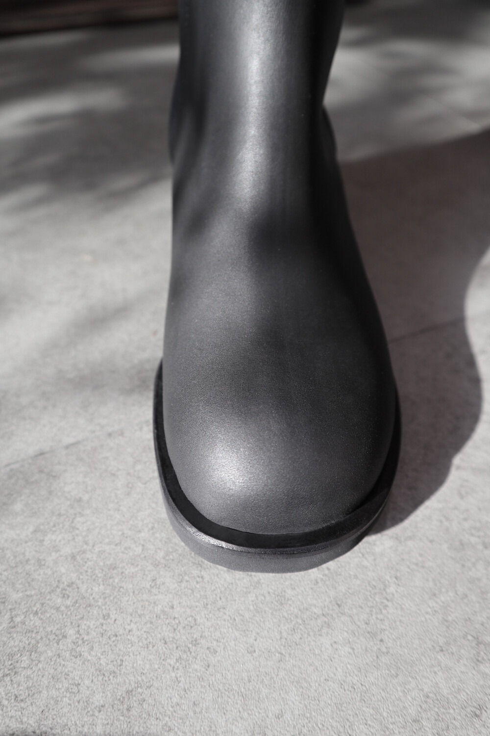 발가락이 불편하지 않을 공간을 만들면서 우리가 생각하는 '든든하고 정감이 있는' 느낌을 내려면 앞 코의 느낌이 중요했습니다. 군화나 일꾼의 장화처럼 부츠는 힘이 느껴지는 신발이기에 둥그스름한 볼륨감을 줬어요.