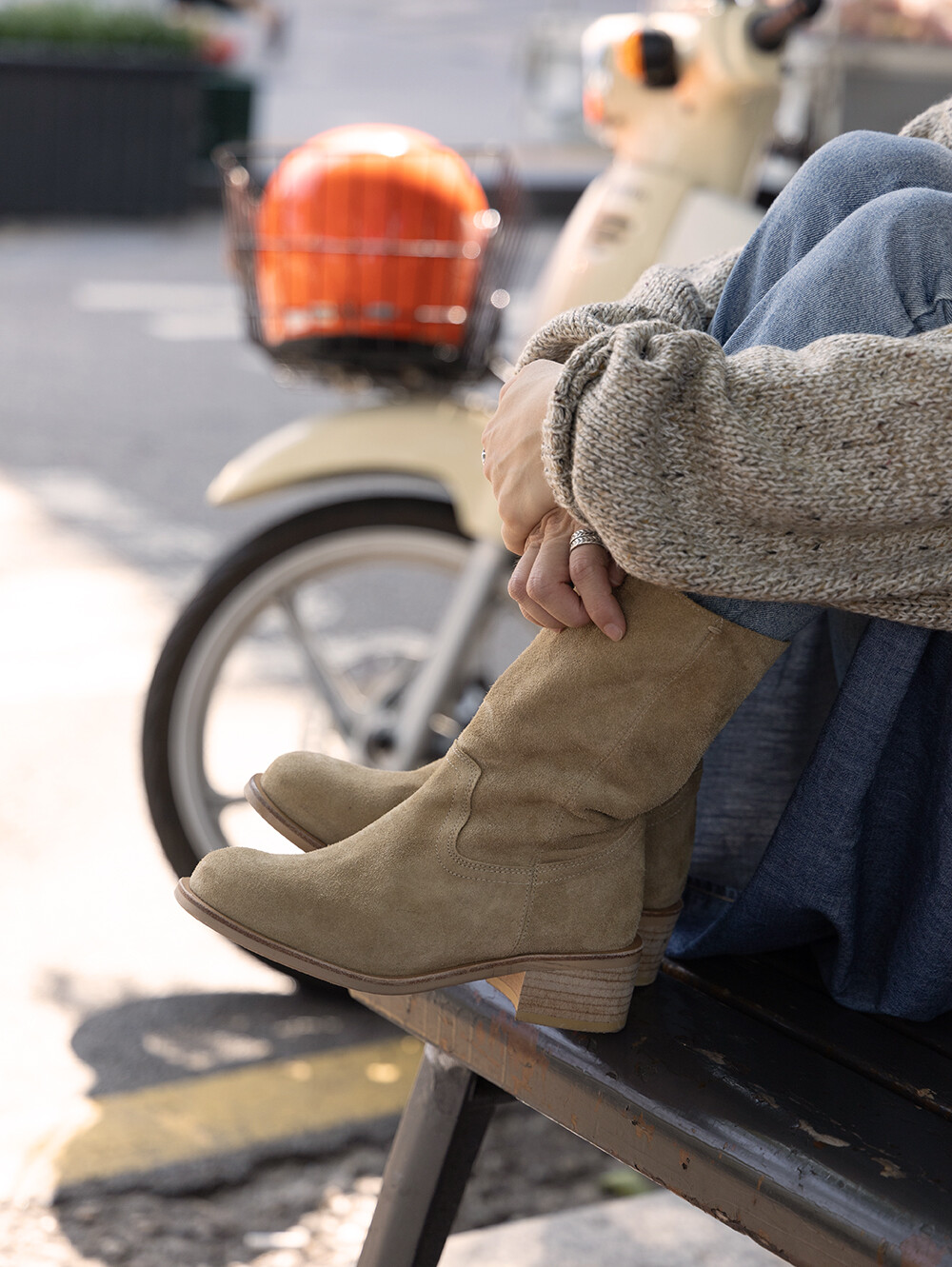 베이지 스웨이드 부츠입니다.