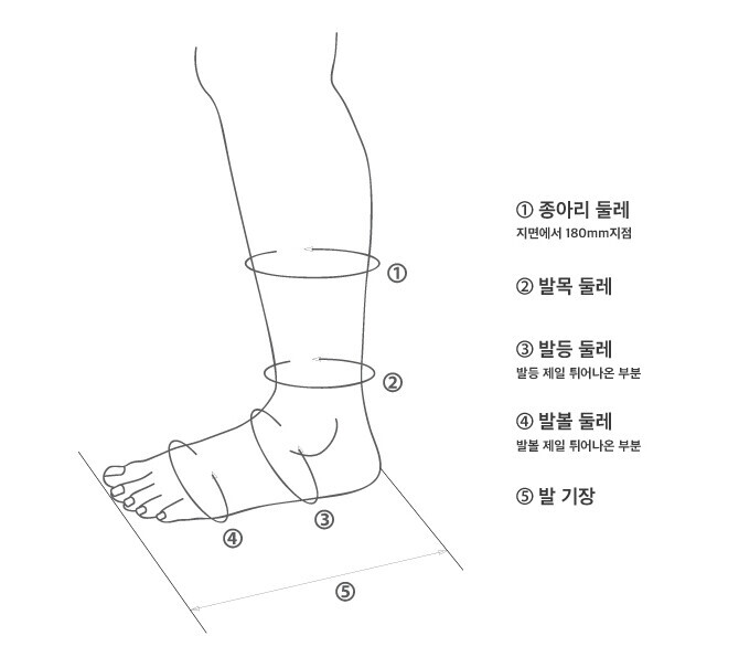 (오른발/왼발) 0.원하시는 사이즈 1.종아리둘레 2.발목둘레 3.발등둘레 4.발목둘레 5.발기장 6.선호하는 핏 (ex 여유있는 핏, 타이트한 핏)