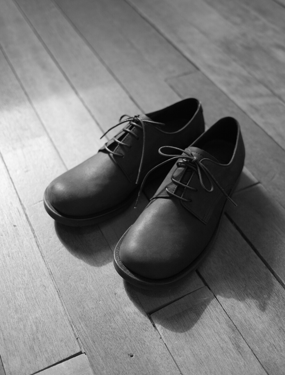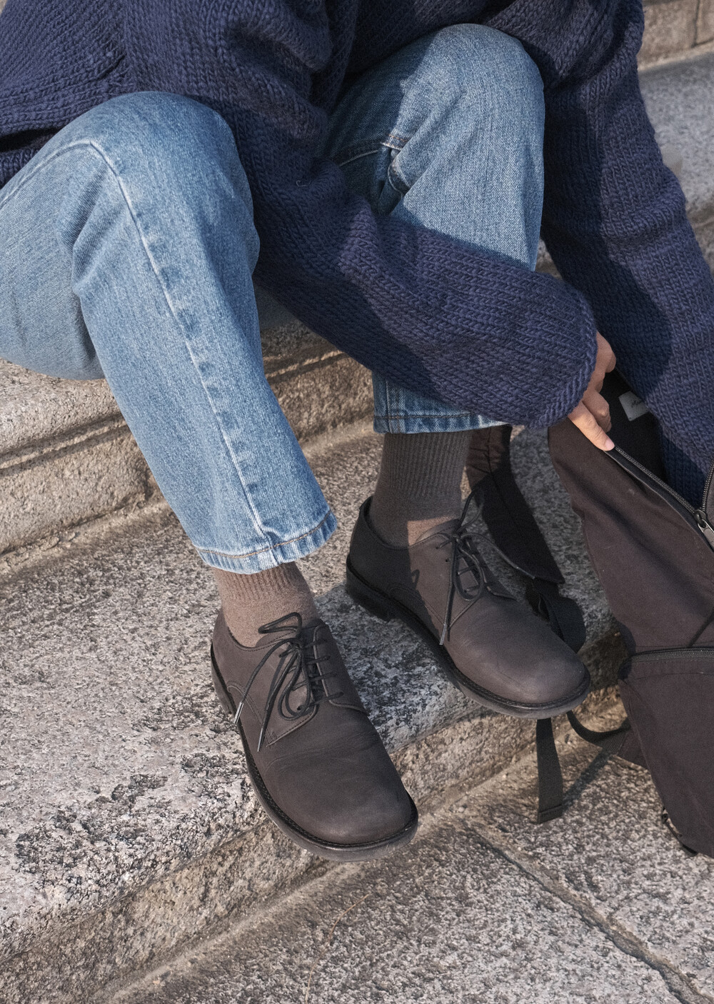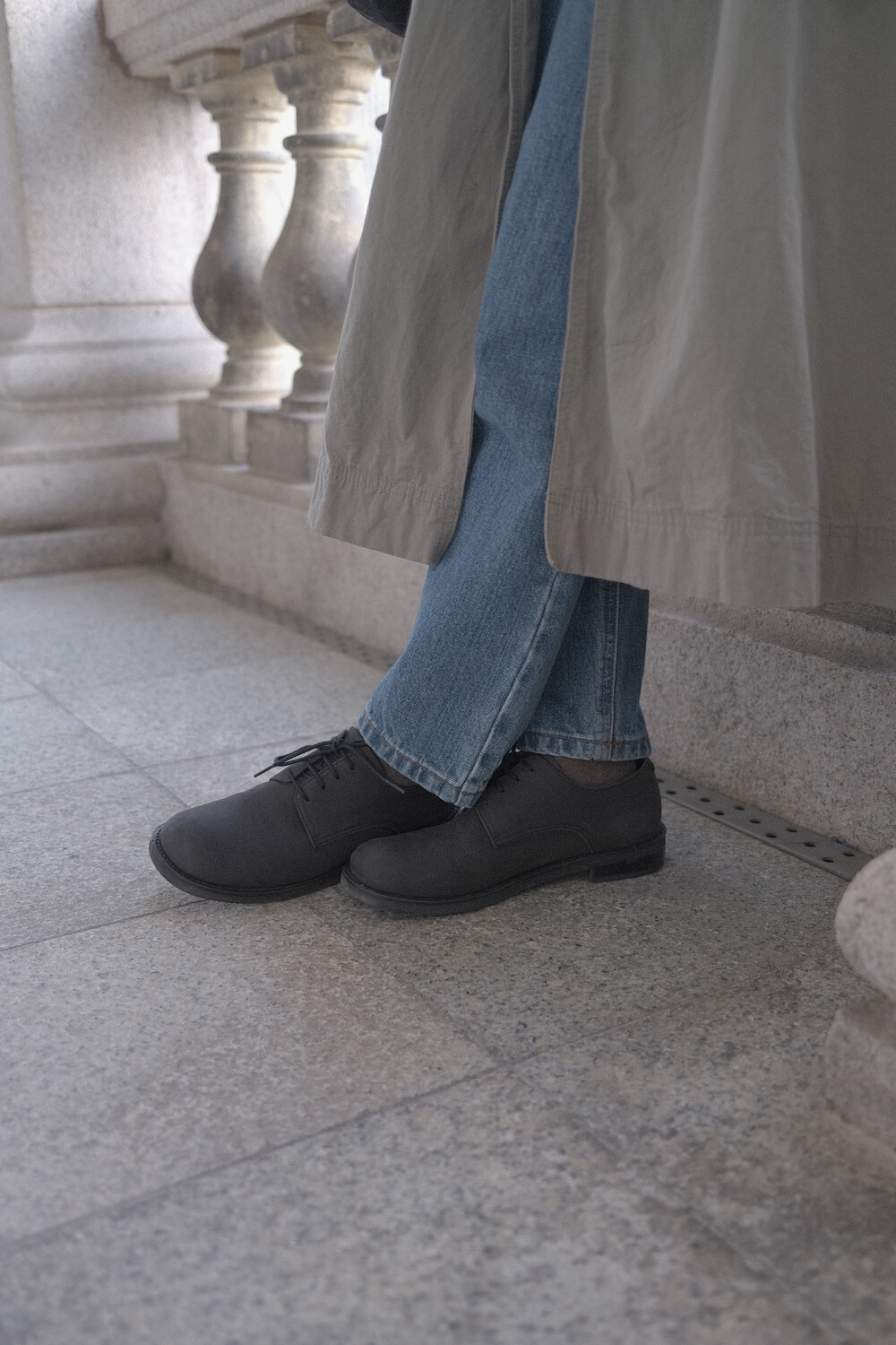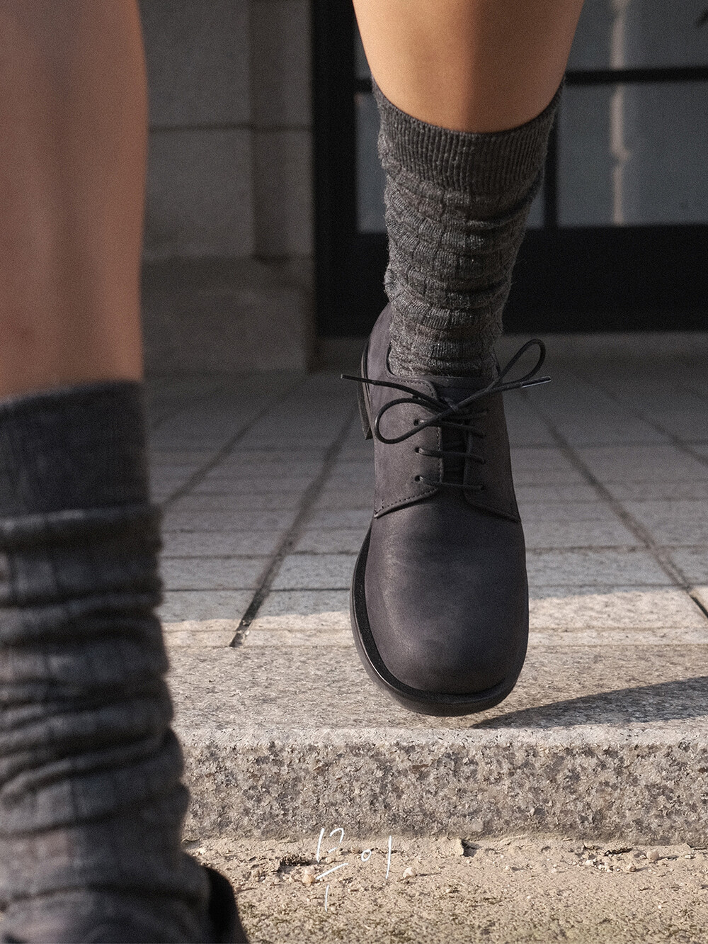 더비 슈즈는 전통 방식을 지켜온 성수동 수제화 공장에서 제작됩니다. 국내 굵직한 제화 브랜드와 꾸준히 협업해온 노련한 제작 장인들이 함께하며, 안정감 있는 완성도를 자랑합니다. 무이는 ‘잘 만들어진 기본’을 지향하며, 허스플랫 이래 빠르지 않지만 꾸준히 이들과 협업해오고 있습니다. 구두를 신는 문화는 점점 줄어들고 있지만, 생활에서의 편안한 착화감과 미감에 대한 고민은 여전히 이어가고 있습니다.