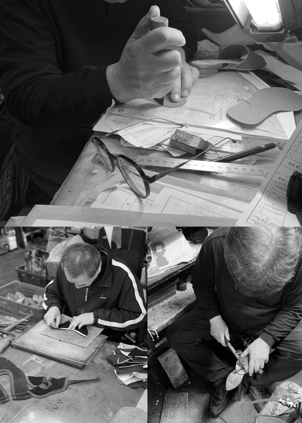 허스플랫을 제작하는 공장에서 작업합니다. 하나의 작업지시서로 대량을 만드는 것이 아니라 주문자의 발의 특성을 고려한 각각의 작업지시서가 만들어집니다. 그리고 신발의 공정마다 최소 5년 이상 경력의 선생님들 손을 거쳐 제작됩니다.