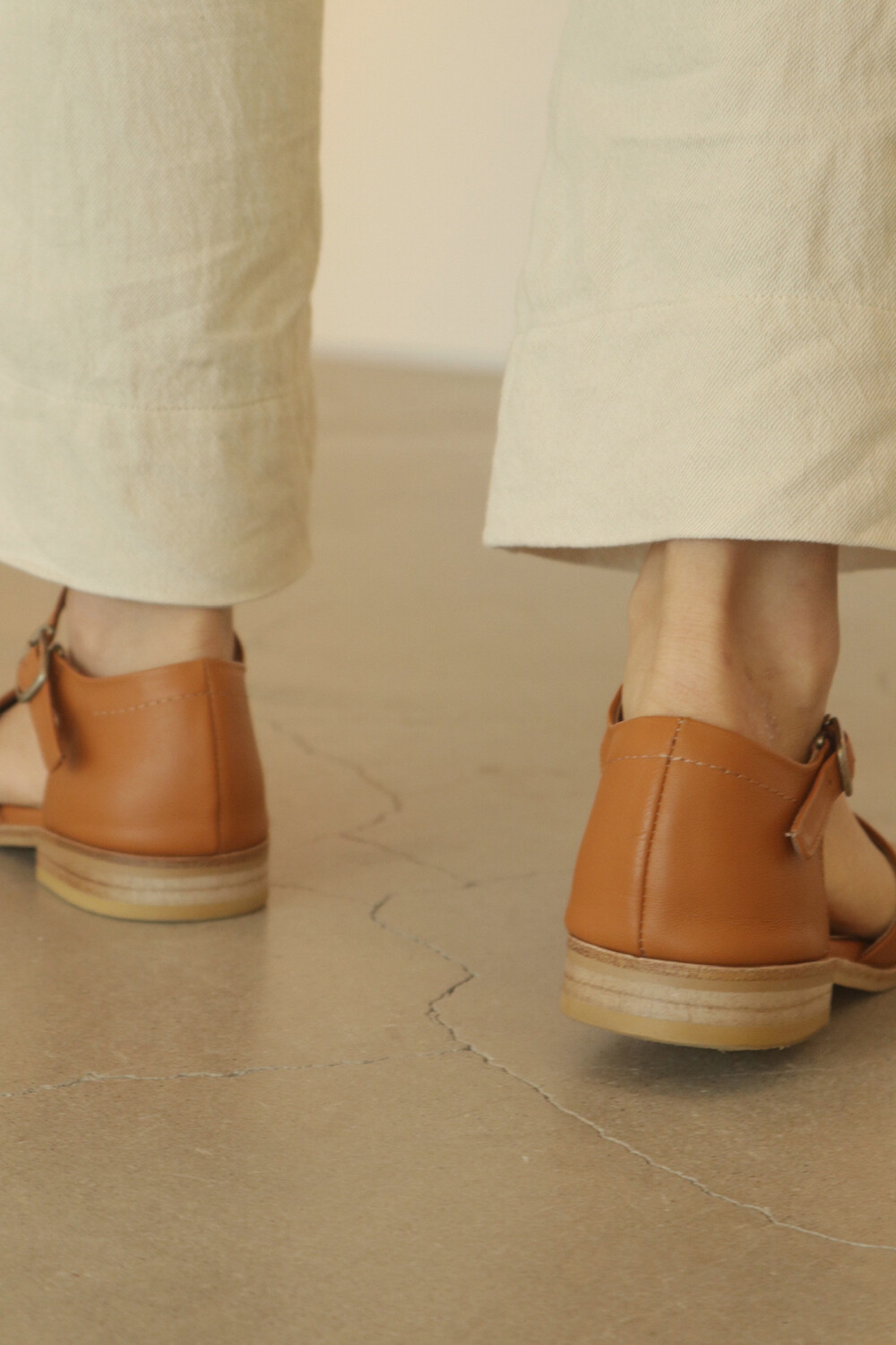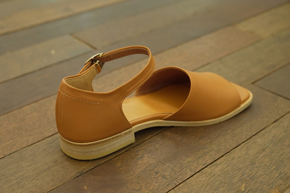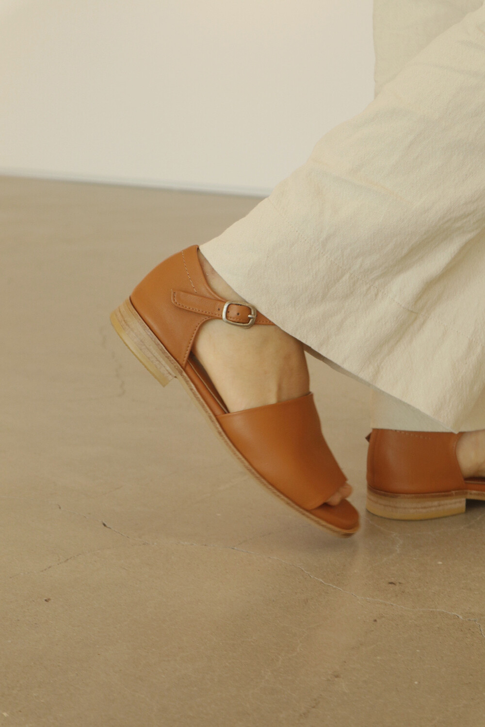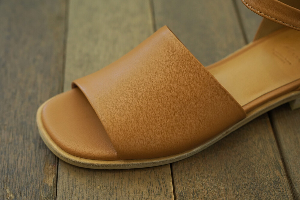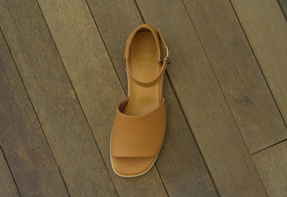 허스샌들의 클래식한 분위기는 스트랩과 뒷꿈치를 가리는 디자인에 있습니다. 스트랩의 이음선을 봉제선 없이 곡선으로 연결하여 담백해졌어요. (고리는 딱 맞게 조정하셔야 걸으실 때 풀어지지 않습니다. )
