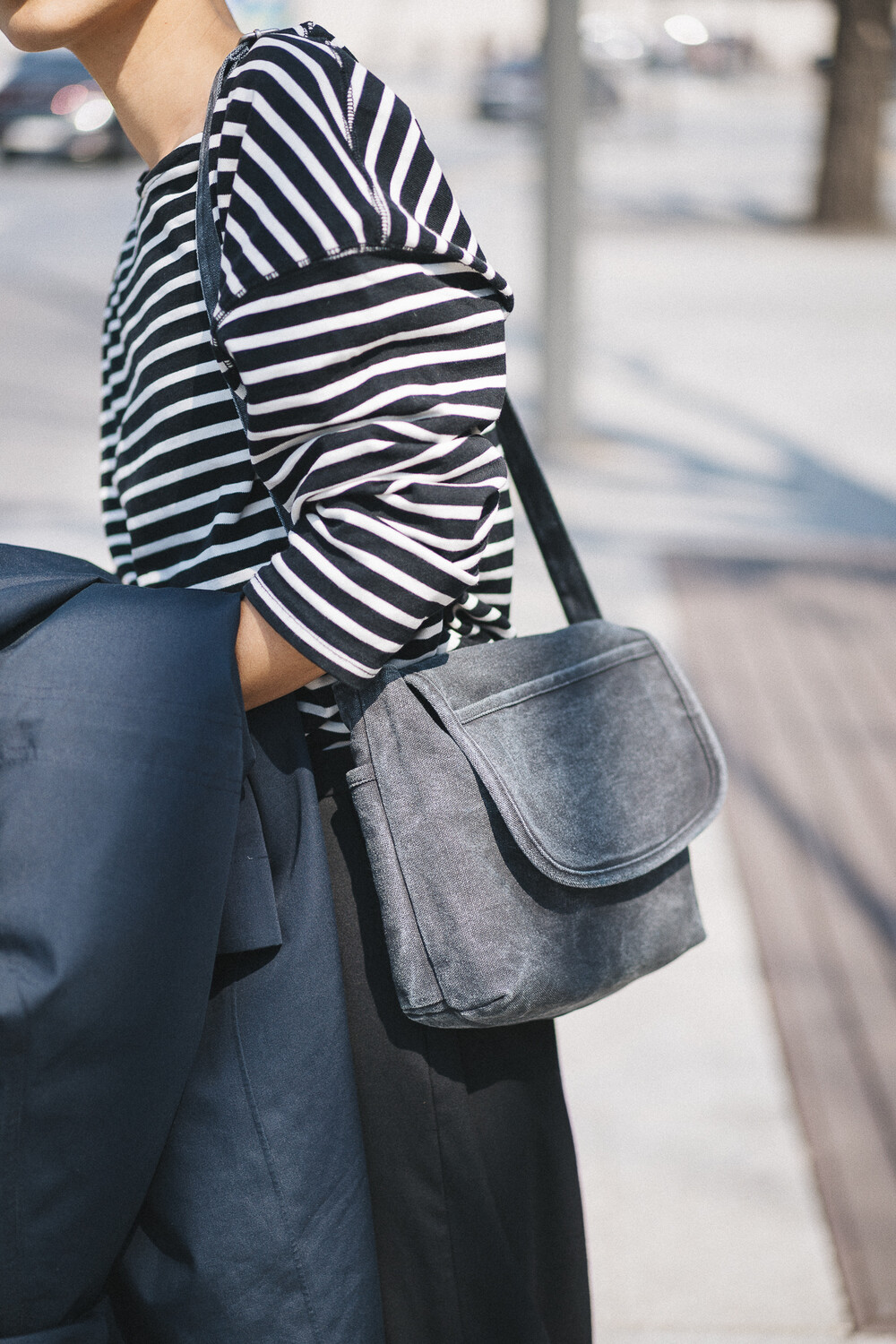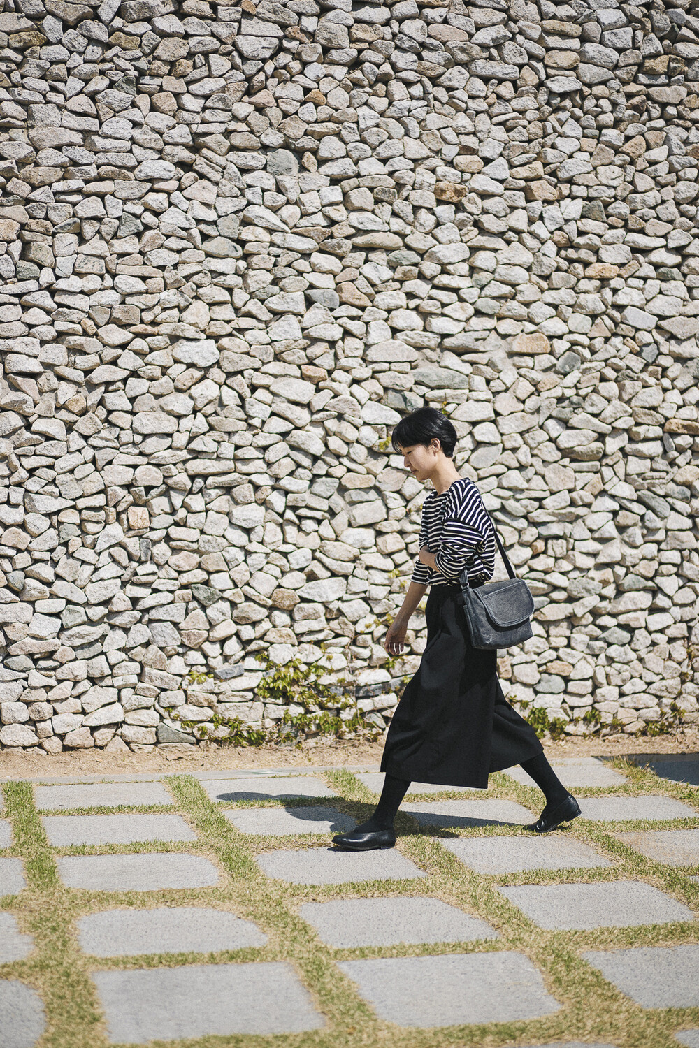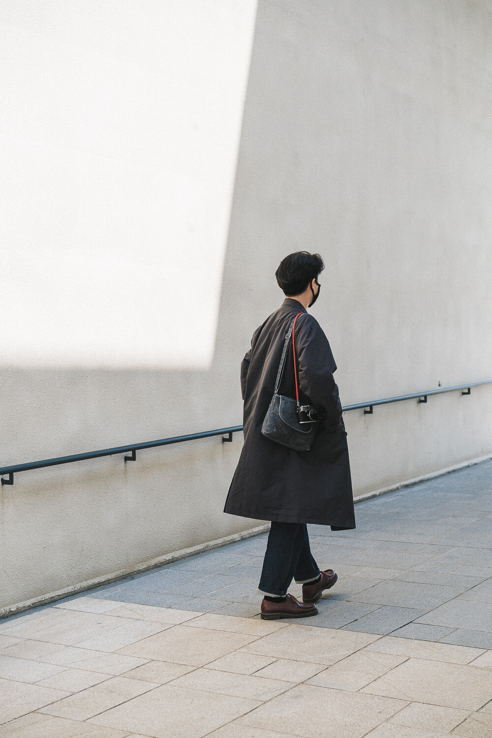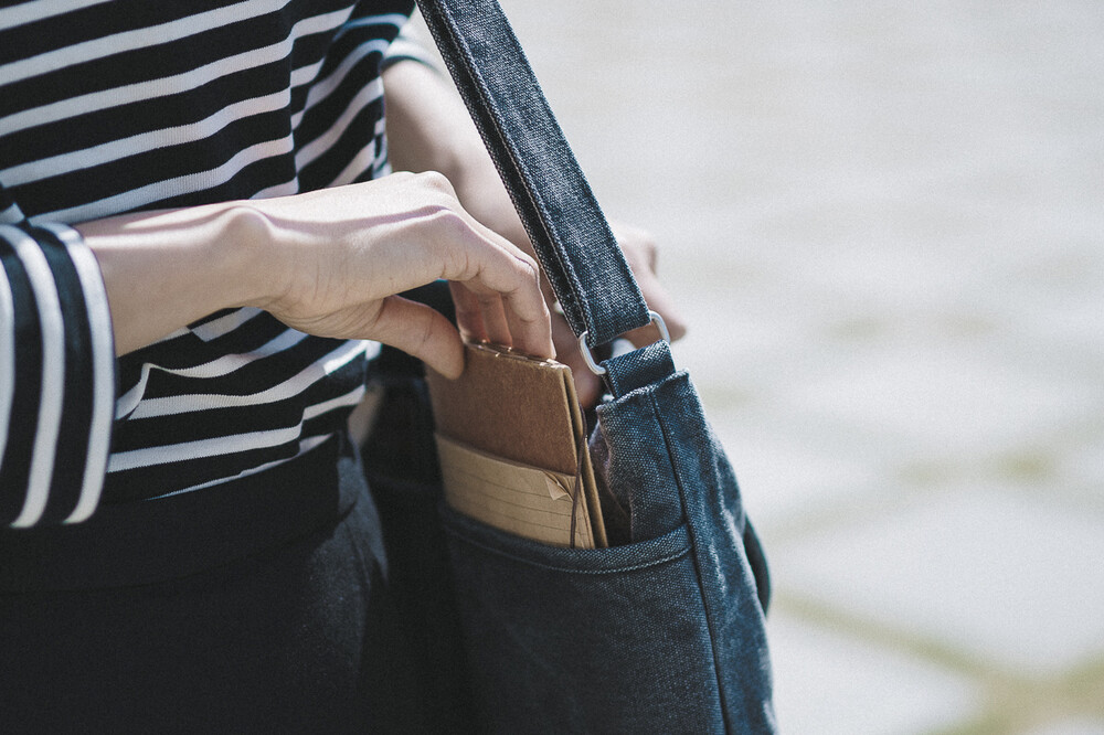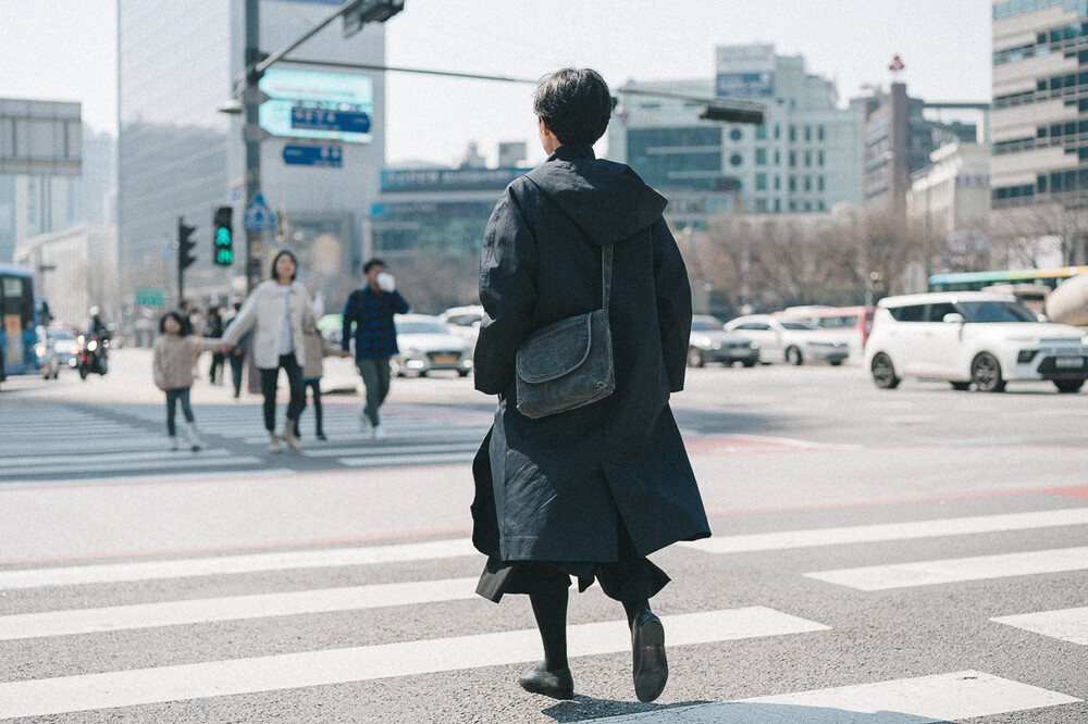 도시 생활자들의 필수품인 핸드폰, 지갑, 보조배터리, 이어폰 외에도 책 한권과 작은 수첩, 펜 등을 효율적으로 넣을 포켓을 만들었어요. 자주 사용하는 물건들을 넣도록 바깥에 포켓을 만들었습니다. 커버의 역할과 속 포켓의 역할을 맡아주는 U자형 포켓은 잠깐 주머니에 넣듯 오픈 포켓으로 활용할 수 있습니다. (커버를 열일이 없을 때 사용해주세요. 잊어버리고 홀딱 오픈했다가 물건을 떨어뜨리지 않으려면요.)